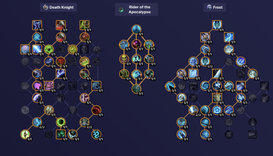 冰霜+天启骑士: 如果你觉得单单冰冻还不够酷炫,想要召唤天启骑士,让战场变成一片冰霜炼狱,那就选择这套天赋吧!天赋代码: