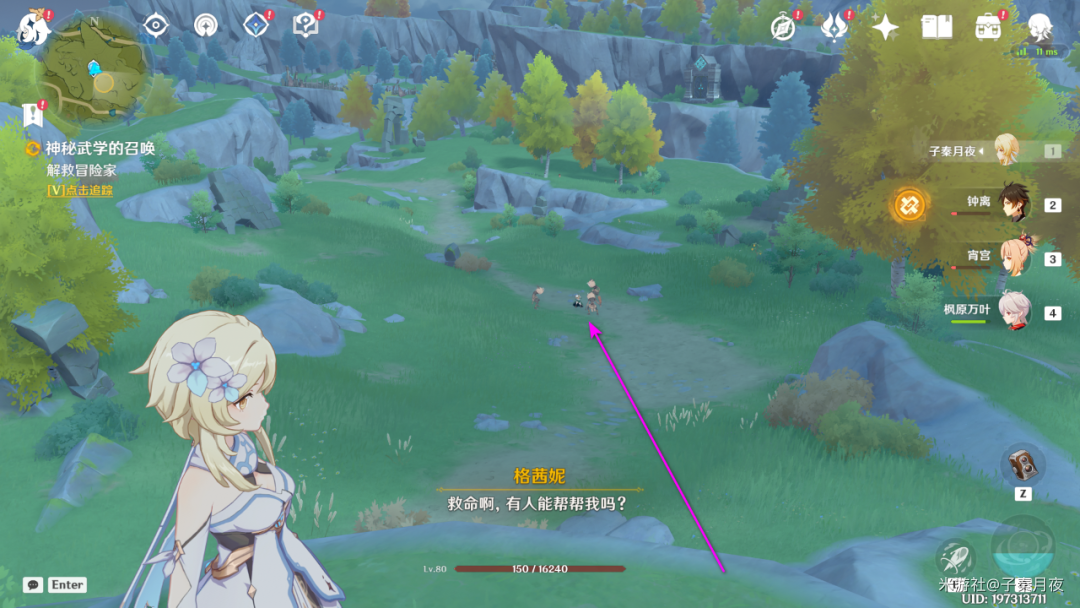 首先,传送到离任务地点最近的七天神像(实在找不到就打开地图,看看哪个神像亮着)。