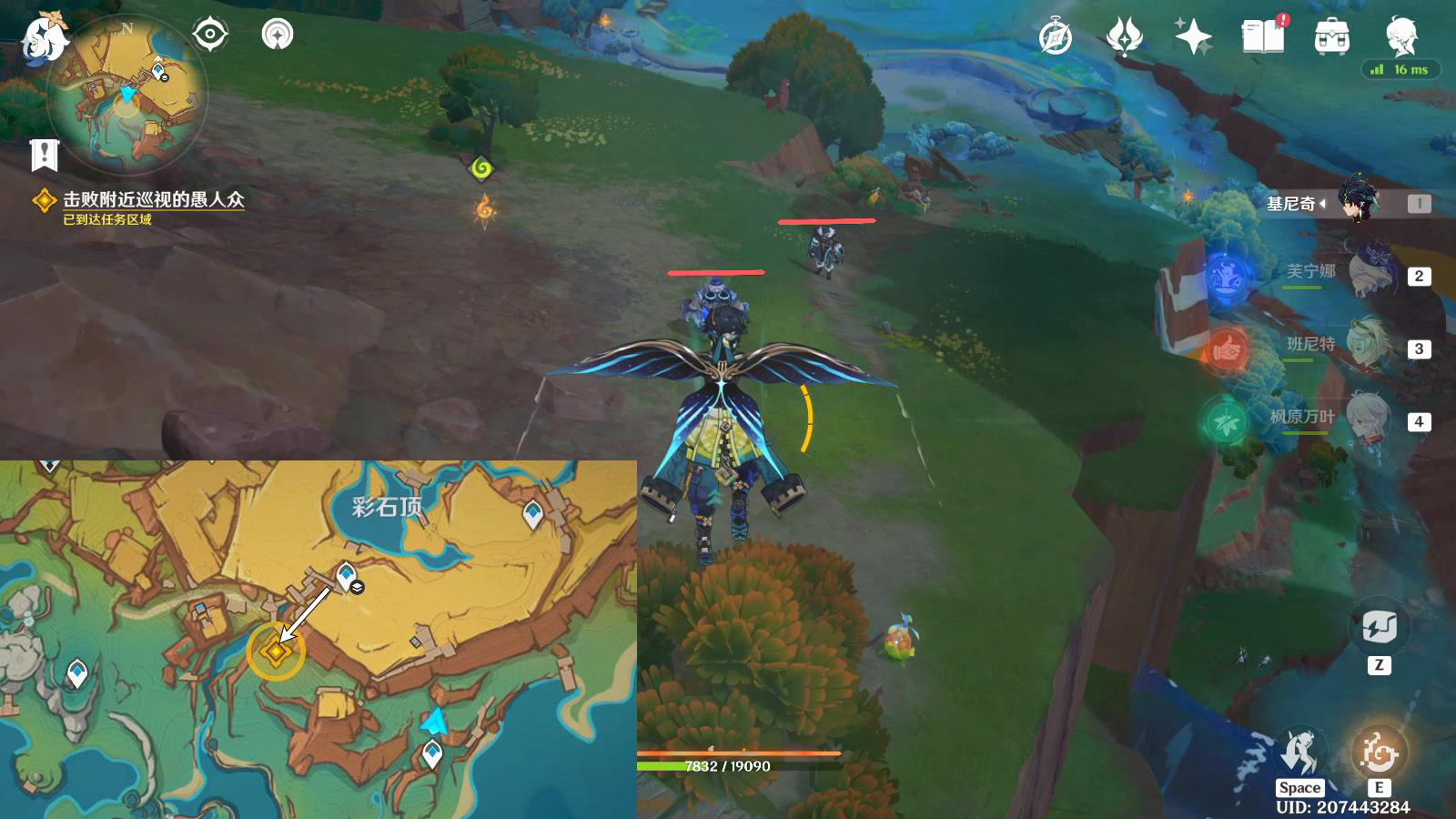地下传送,地面开战: 传送到彩石顶西南方向的地下锚点,然后朝着地图的西南方向前进,把那些愚人众打得落花流水!