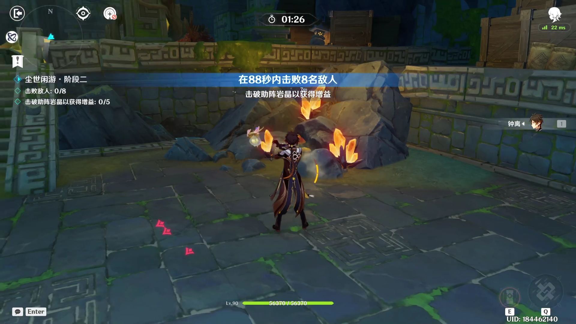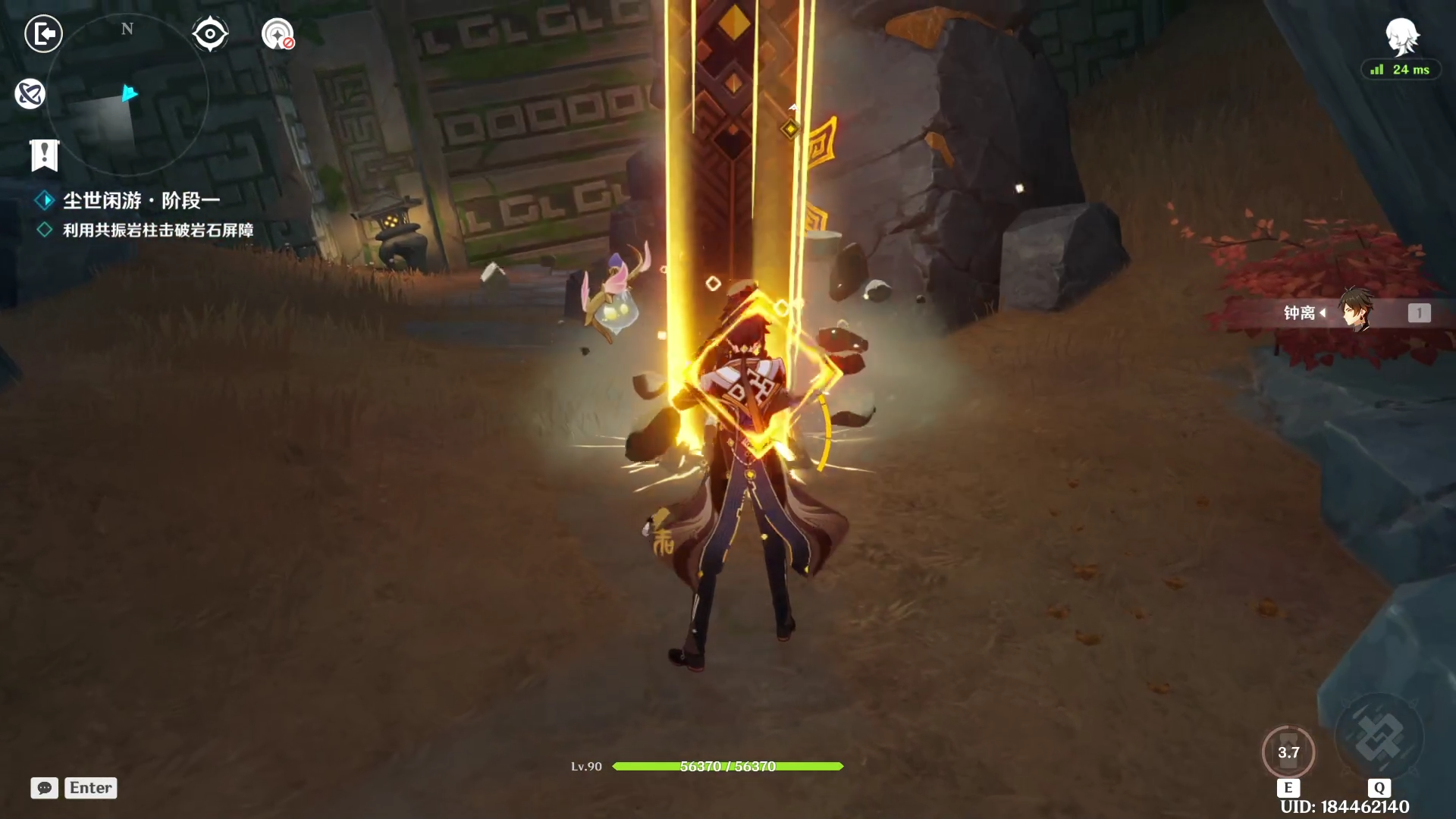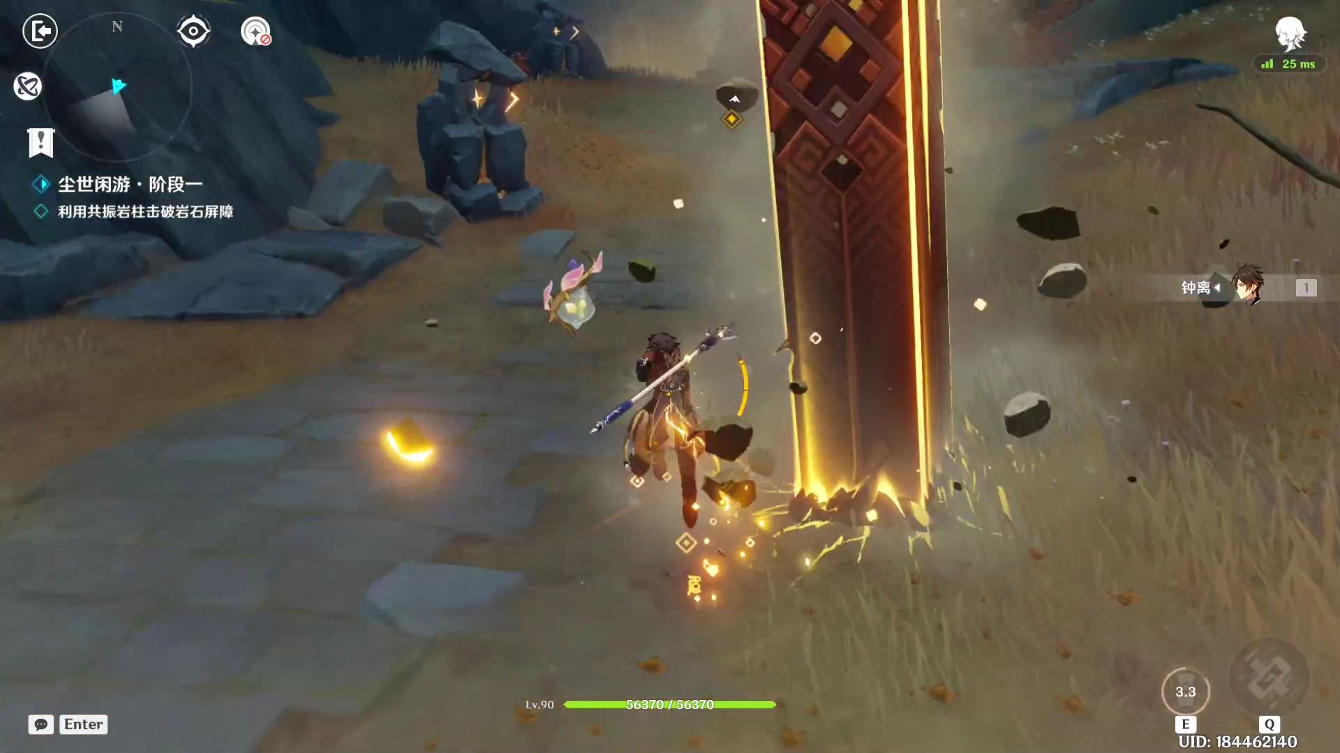 这一阶段的核心就是利用钟离的地星技能(短E),像个地震仪一样,震击共振岩柱,打开通往下一个密室的岩石屏障。记住,这里只需要三次“短E”!