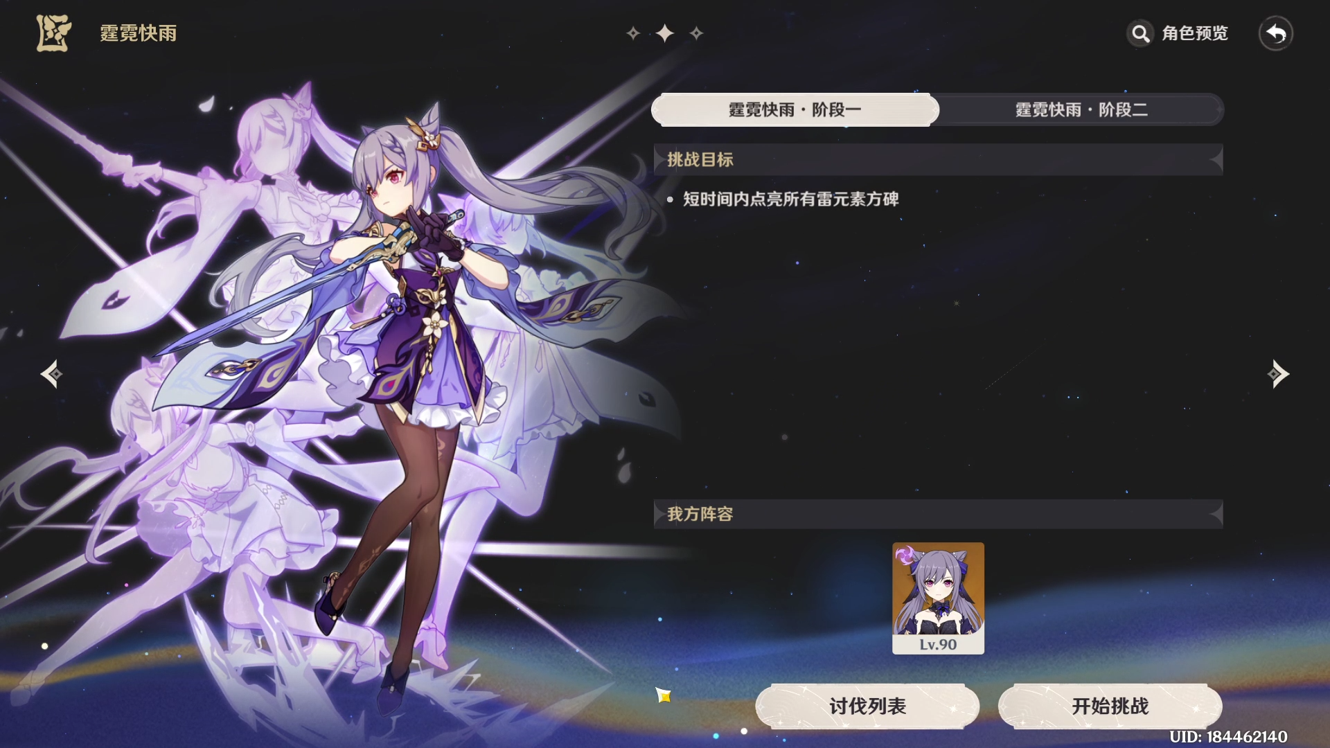 友情提示:本任务刻晴要单挑!圣遗物方面,别抠搜,把双爆和攻击词条拉满!主词条嘛,攻击沙、攻击杯或者雷伤杯,暴击头/爆伤头/攻击头,哪个顺手用哪个,散件也无所谓,重要的是面板够看!武器嘛,随便从哪个角色手里“借”一把攻击力最高的单手剑就行,反正都是为了阿晴!