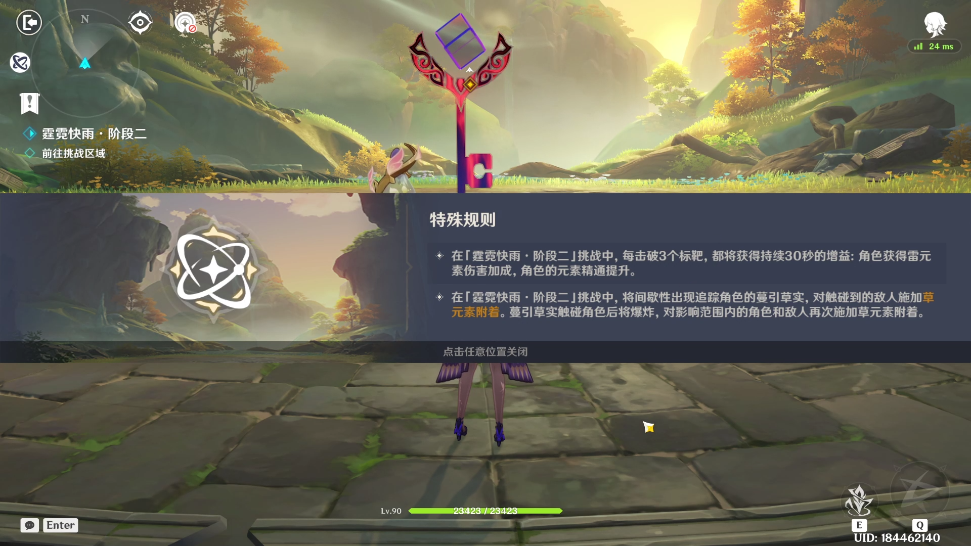 地图小技巧:击破空中的3个标靶,可以获得30秒的雷伤强化和元素精通提升!另外,地图上还会刷新草团,吸引敌人附着,打出激化反应,伤害爆炸!