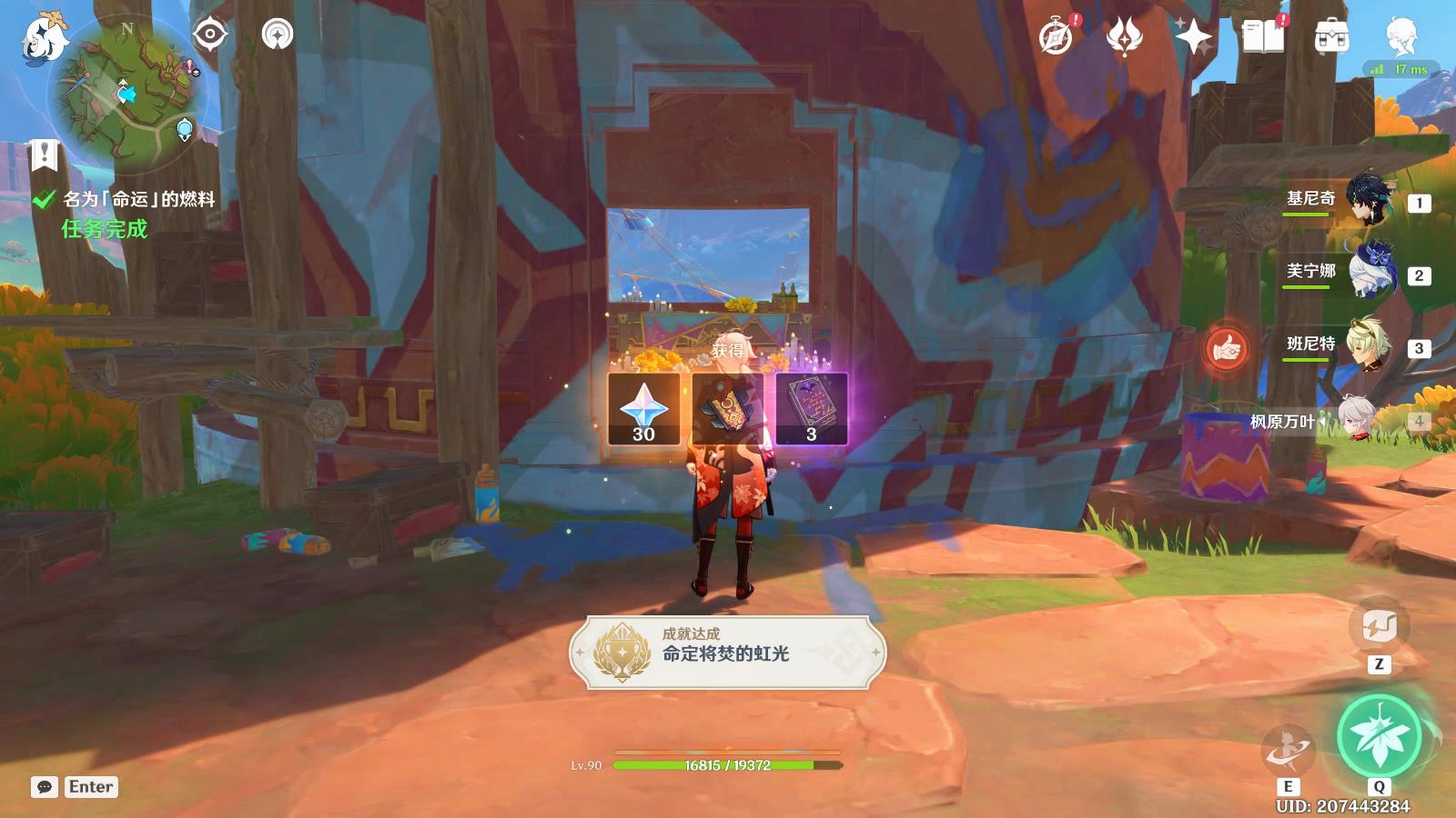 恭喜你!对话结束,任务“名为命运的燃料”顺利完成!同时,你还会获得成就“命定将焚的虹光”,是不是感觉棒棒哒?
