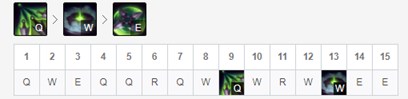 主Q副W,可以频繁的使用霞阵,Q技能升满有对小兵额外伤害,所以主加Q,E技能只用来做先手或者位移,一级就够了。