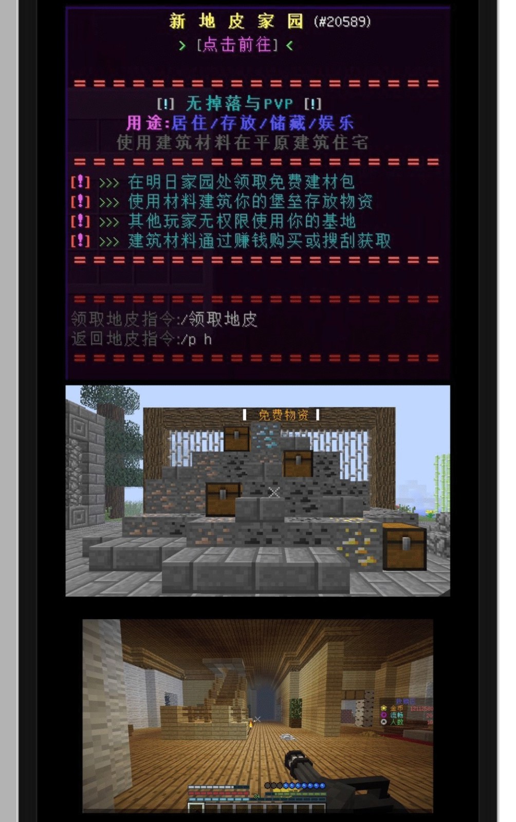 单挑排位系统,多人竞技场,小游戏中心,生化模式,公会插件,组队插件各种趣味内容。杀僵尸,开飞机,组队打BOSS,抢物资,死亡掉落!攒金币来打造自己的庇护所,点券随便肝,会员免费送。