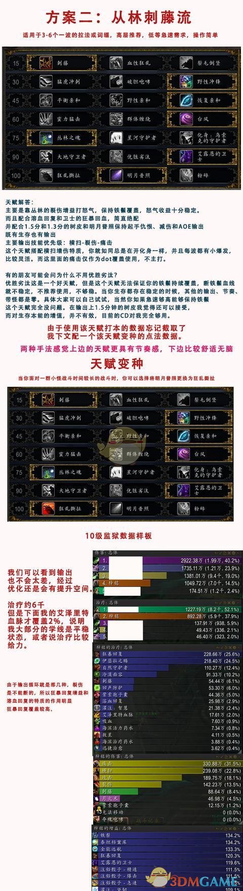 第二层天赋:猛虎冲刺 破胆咆哮 野性冲锋 这个见人见志,我有的时候用1有的时候用3,大部分情况用3. 第2个天赋适用情况不多, 当对不能迷惑的怪适用的时候就不能,通过施放咆哮来打断了。