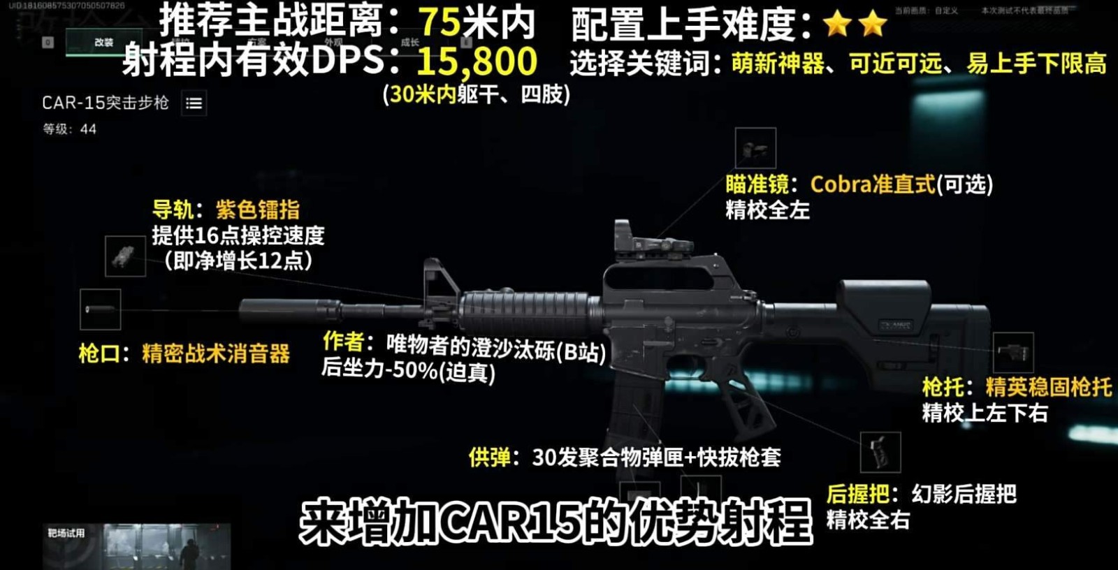 这套改装方案比较适合新手玩家,不仅提升了武器的操控性,而且实战中灵活性也很强,适合快节奏的突击。