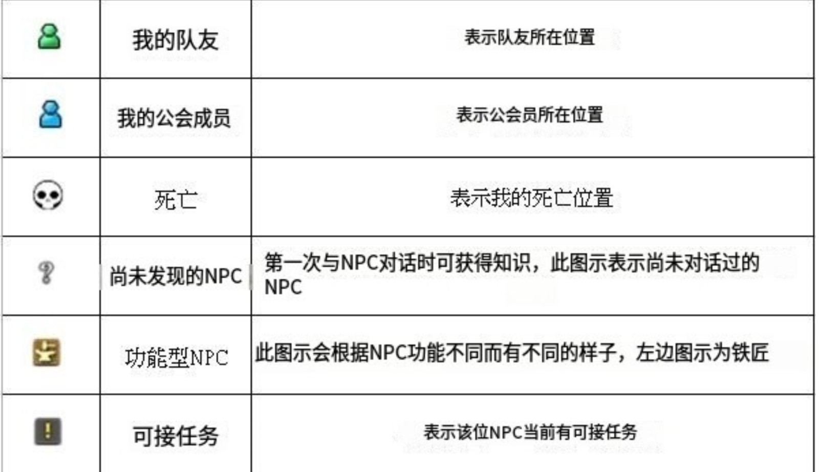 NPC图示的种类约有40多种,将鼠标移到NPC图示上即可查看名称,