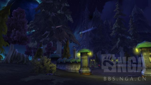 When you arrive in Darkshore, the zone looks much different than the chaos left by the Burning of Teldrassil. An unnatural night, bathed in a giant dark moon, permeates the zone. The remains of Teldrassil are no longer visible, hidden by the thick fog by Azeroth's ocean. You will immediately notice that the area around Lor'danel has been turned into a Goblin lumber mill. You will also have a debuff, Hunted.