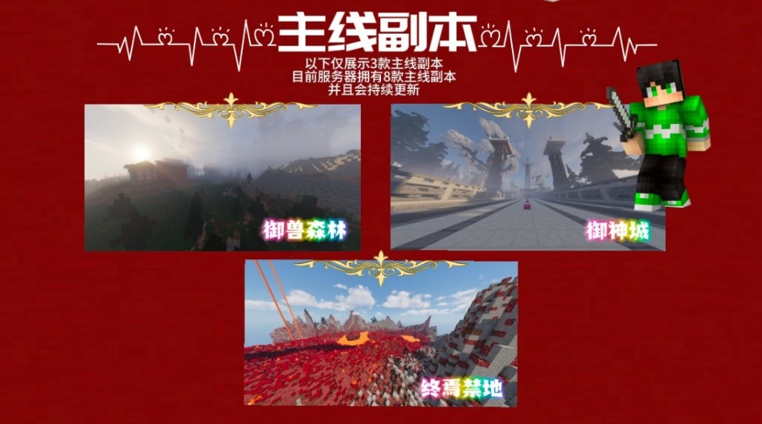 服务器副本众多 20+副本等你来肝 主线副本 支线副本 团队副本 独立副本 刷钱副本 挂机副本这些应有尽有!