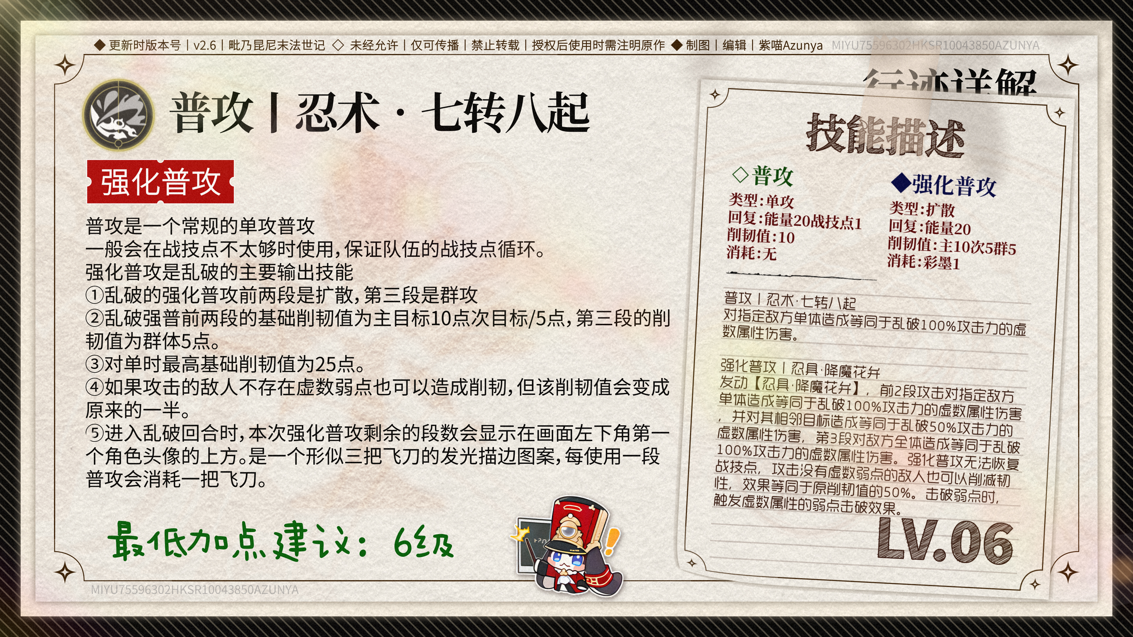 ②乱破在使用强化普攻时,前两段可以选择性攻击能击破的小怪,在第三段强普之前多叠一些充能去对付精英怪。