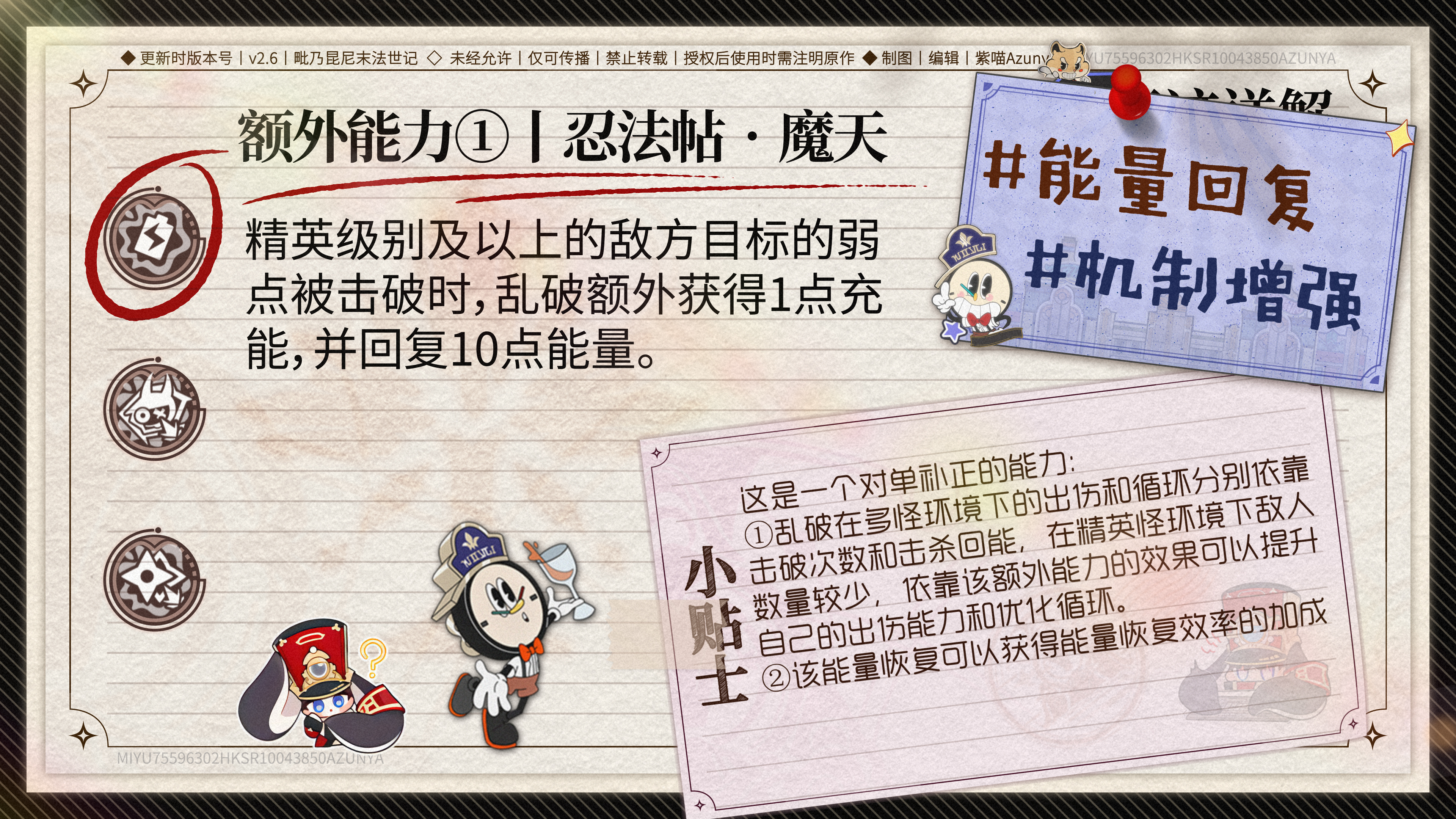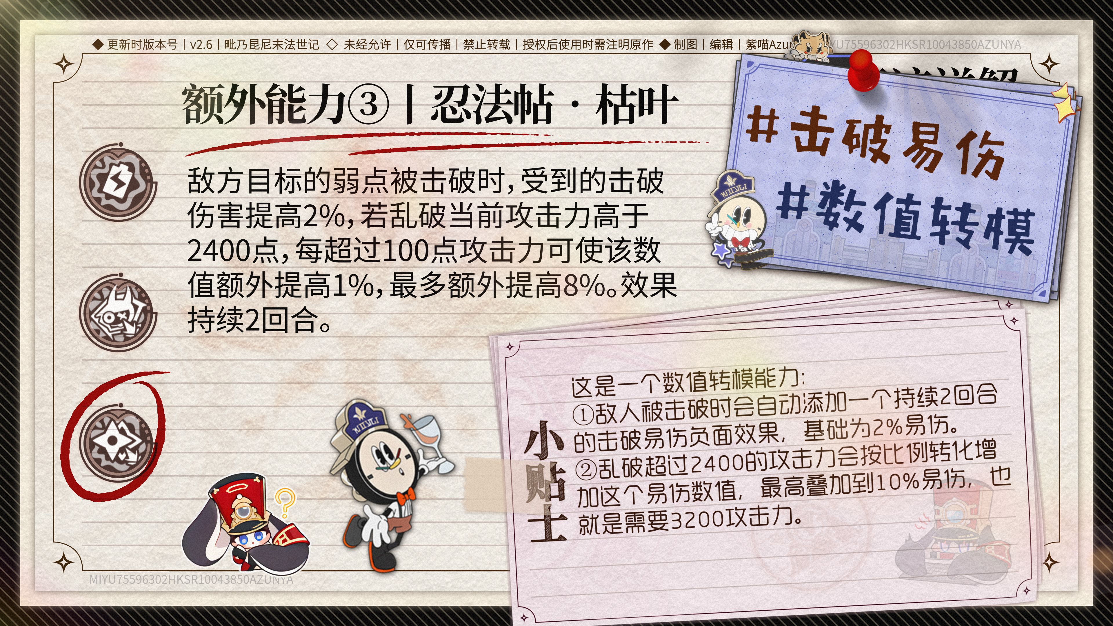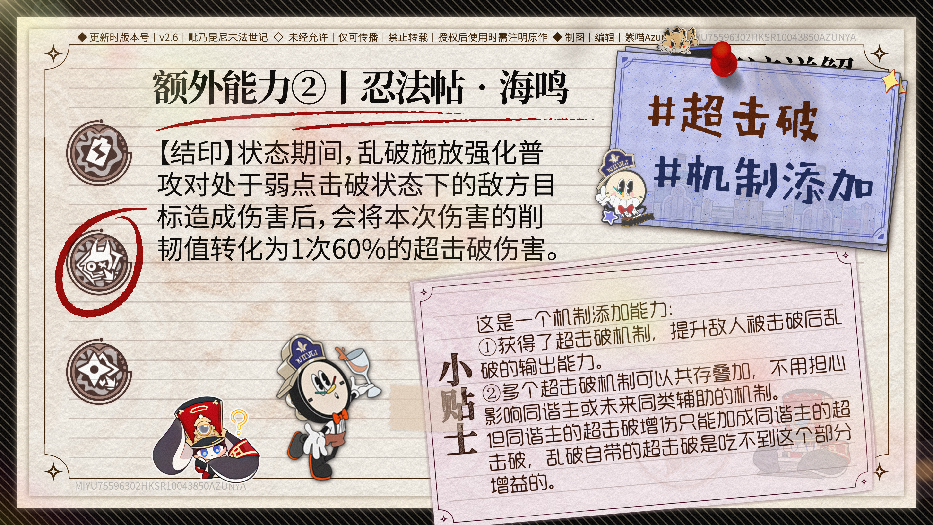 ①获得了超击破机制,提升敌人被击破后乱破的输出能力。