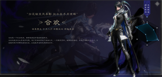 说明:与焚香类似,影/月·合欢都属于近战输出职业,唯一的区别是输出手法的区别,比如影·合欢主要是利用影子打输出(有点类似于英雄联盟中的劫),月·合欢则需要监控BUFF,配合技能打出高额爆发伤害。