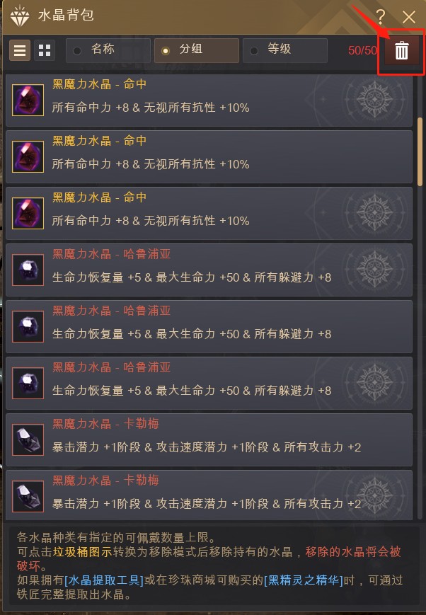 之后右击想要移除的水晶即可移除。(移除的水晶会被破坏并消失,请慎重选择。)