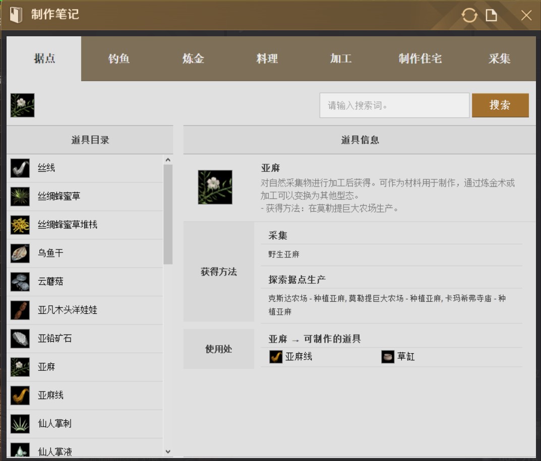材料是制作道具时最基本的要素,主要是透过采集与加工可以获得。