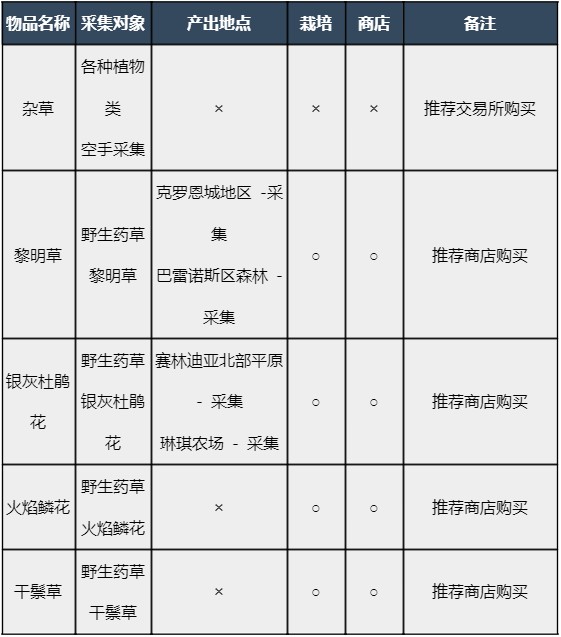努力取得材料。炼金主要使用的各种类材料获得方法如下。