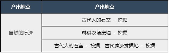 痕迹类可以透过「探险据点生产 - 发掘」获得的道具,稀有价值高。