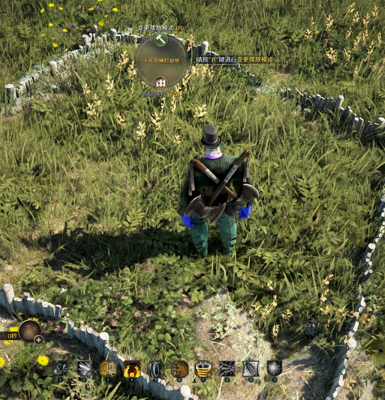 完成配置的话会产生栅栏,进到中间与其互动(「R」按键)会开始田地管理。