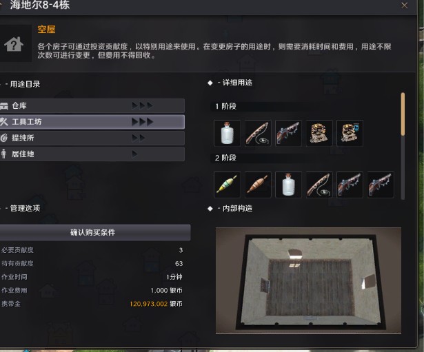 在村庄的房子中寻找可以以工具工坊的用途进行购买的房子后