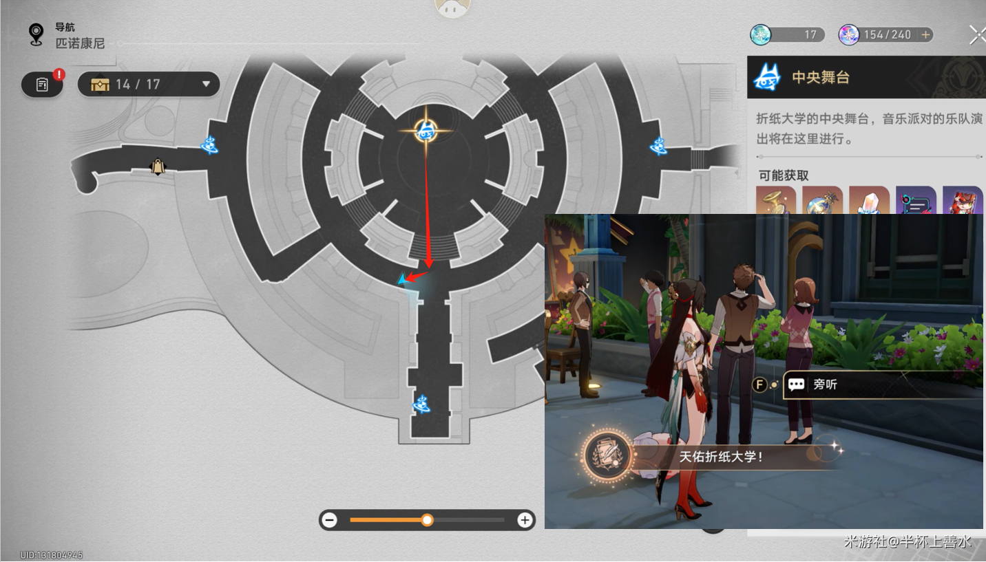 就在最近崩坏星穹铁道终于上线了2.6版本给我们带来新冒险,这次版本更新还上线了许多新内容,有新遗器,新地图,新角色,还有新成就,那么有小伙伴好奇天佑折纸大学成就怎么做,下面就来告诉大家。 崩坏星穹铁道天佑折纸大学成就攻略 传送到【中央舞台】,向南走找到【不明真相的男学生】走进点进旁听即可获得该成就。 本文内容来源于互联网,如有侵权请联系删除。