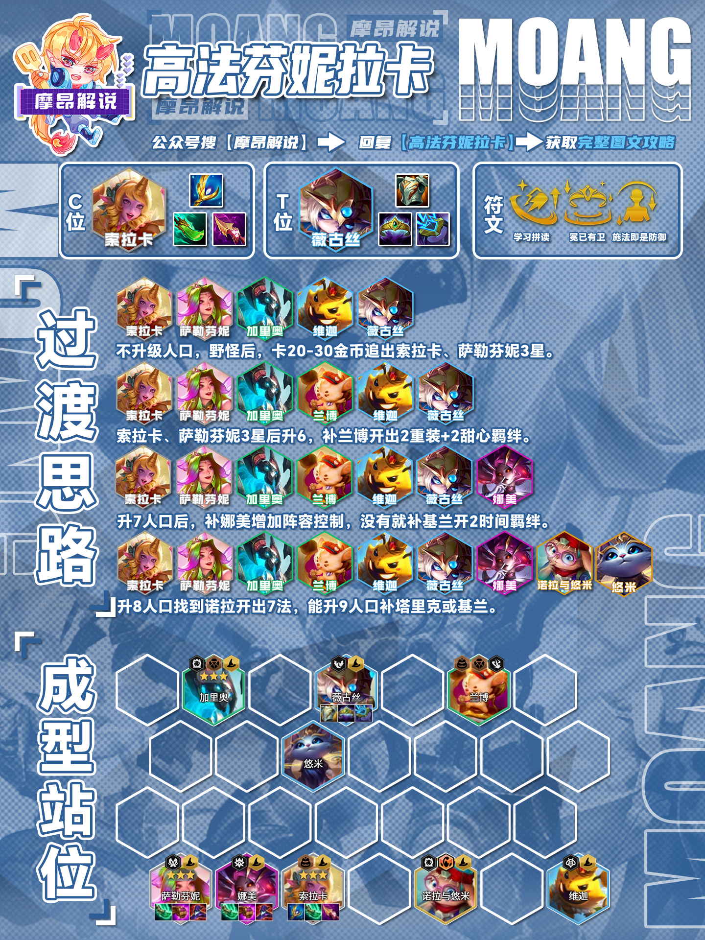 云顶之弈14.21版本大更新,很多阵容需要重新进行调整,比如高法芬妮拉卡阵容,那么云顶之弈14.21高法芬妮拉卡阵容怎么玩?下面就给大家带来云顶之弈14.21高法芬妮拉卡阵容推荐。 云顶之弈14.21高法芬妮拉卡阵容推荐 法师体系更新后还是可以玩,但强度上双端差距较大(云顶强度完全>金铲铲,金铲铲中索拉卡假赛太严重且续航能力太弱了),云顶胡起来能吃鸡,而金铲铲仅为吃分阵容。 当前法师建议胡的时候冲,但当前比较吃7法,比较建议法转的时候冲。 本文内容来源于互联网,如有侵权请联系删除。