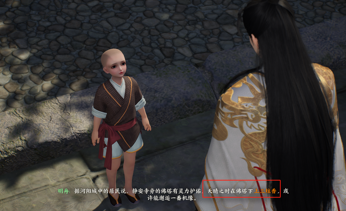 触发方式:在河阳城(城内)右下角静安寺内,天晴之时在佛塔下上三炷香。