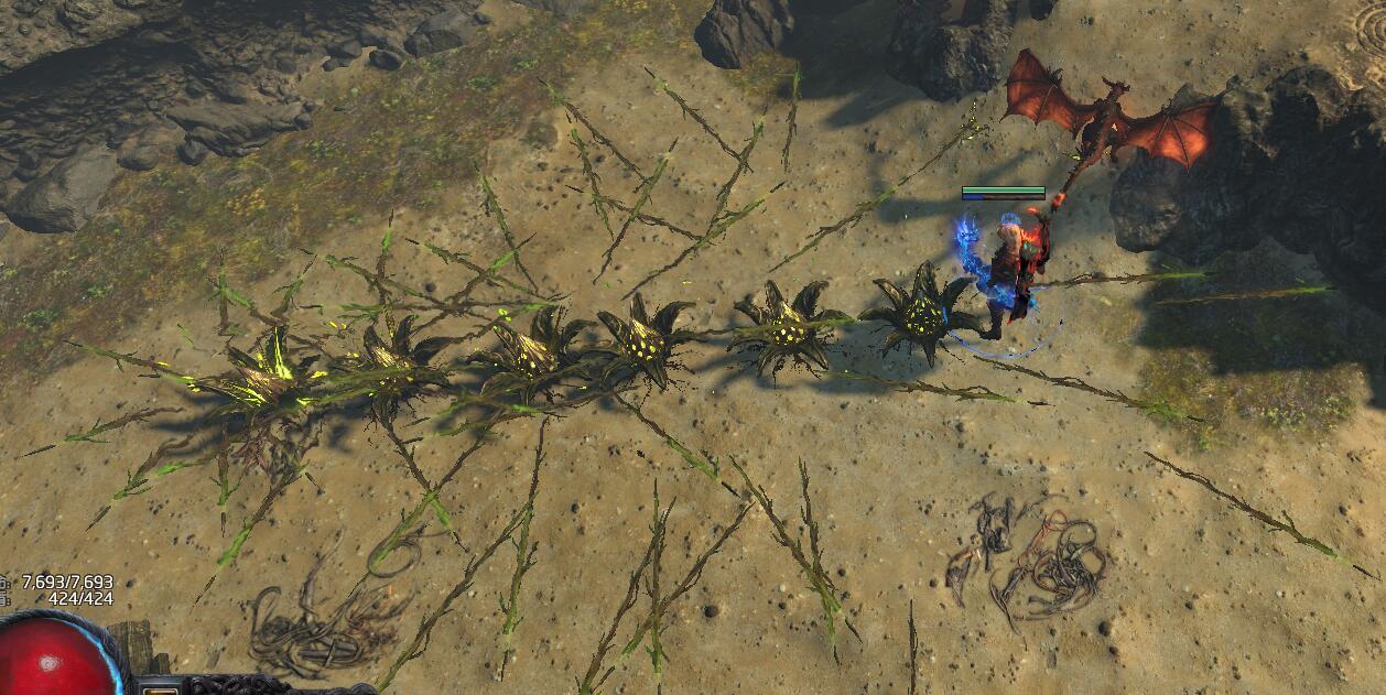 天灾之箭孢子的多段hit决定了他可以像龙卷射击一样,利用深渊珠宝堆元素点伤来作为主要伤害来源。而天灾之箭不但有龙卷射击一样的投射物覆盖范围,和不用瞄准的特性,同时天灾之箭的伤害系数更高,更适合攻坚。