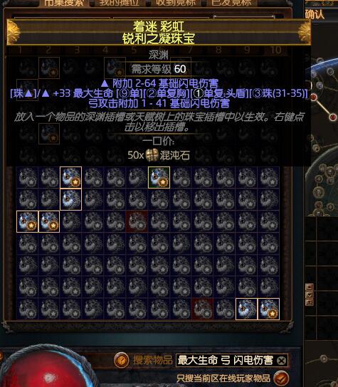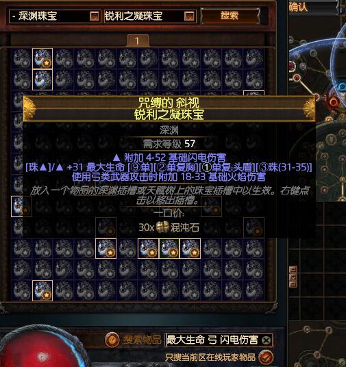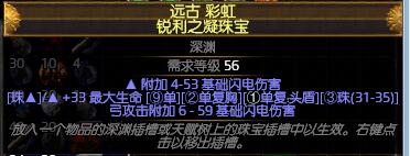 深渊珠宝:生命,电点伤,冰点伤,火点伤。尽量多电点伤,但是冰点伤也需要一点,保证能冰住怪增加生存能力。