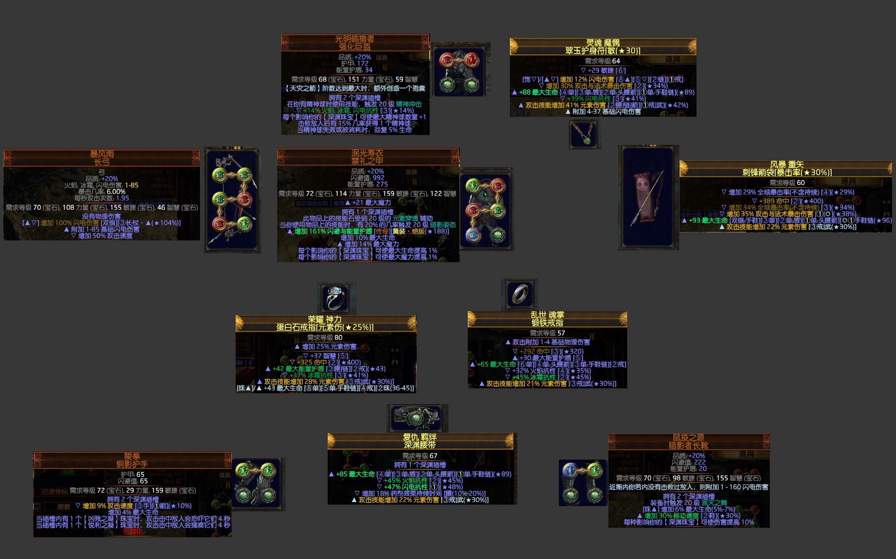 我的装备供参考,一图流: