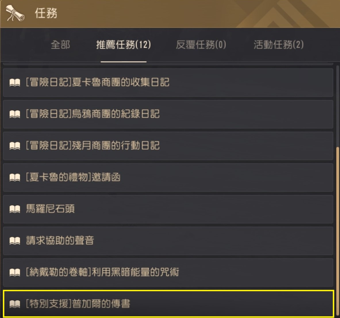 ▲ 透过普加尔的“[特别支援]”任务可以进行纳勒锡兰装备获得任务。