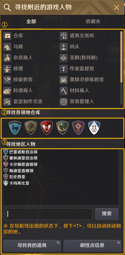 ▲ 可以寻找附近的NPC中,具有该功能的NPC。
