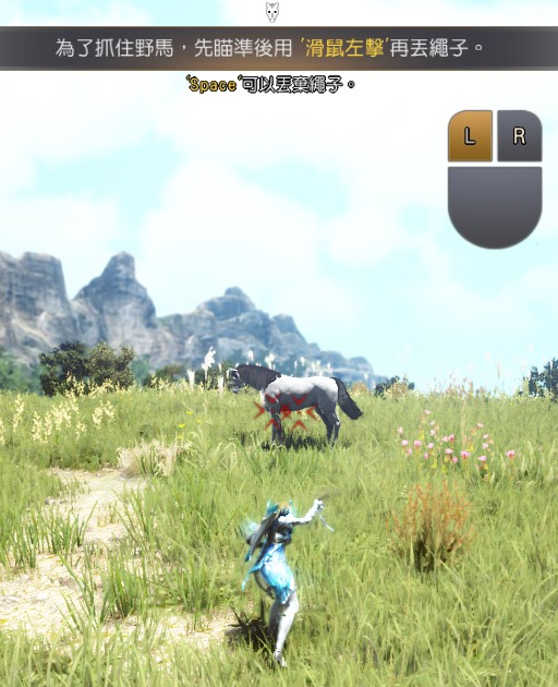 使用w方向键,慢慢接近马,有时野马会举起前脚抵抗,点击空格键进行较量。