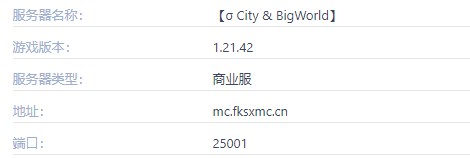 我的世界里面有很多的服务器,每个服务器都有自己的独特的玩法,今天给大家带来的服务器的名字叫:西格玛都市,那么下面就是这个服务器的一个具体的IP地址.