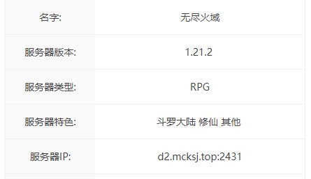 我的世界里面有很多的服务器,每个服务器都有自己的独特的玩法,今天给大家带来的服务器的名字叫:无尽火域,那么下面就是这个服务器的一个具体的IP地址.