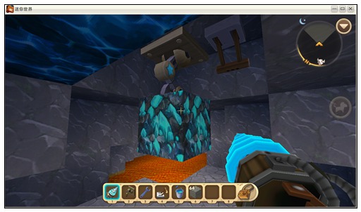 先去岩浆附近寻找蓝钻矿脉,找到之后先在钻石周围的岩浆上铺条能走的路,然后找到对应的位置,拿出准备好的推拉机械臂和开关放置在钻石矿正上方的洞顶上。然后打开开关,推拉机械臂就会将钻石矿捞上来,这一步有点难度,因为钻石矿的位置不是那么好把握的。捞上来后就可以用钻头挖矿了。