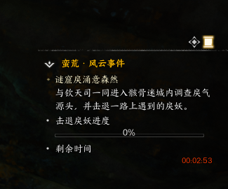 迷窟戾涌意森然 该事件为钦天动荡鬼魅生后续事件,原地等待事件刷新,打开地图查看位置。 该事件在山洞中,沿着道路进洞即可,跟随NPC击败怪物