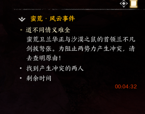 道不同情谊难全 该事件为谁人混迹黑白间后续事件,原地等待事件刷新 击败怪物拾取物品
