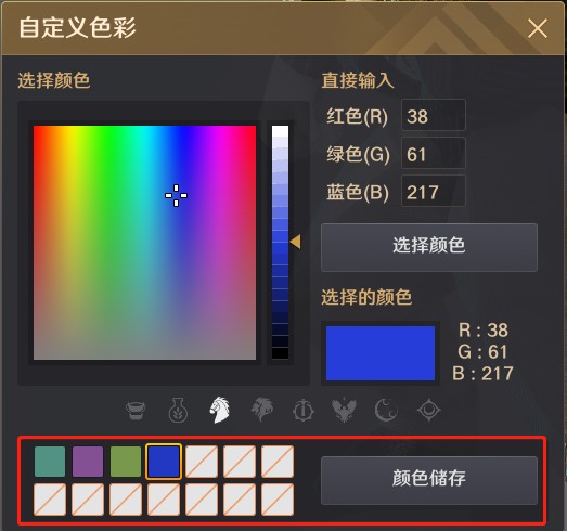 经常使用的颜色可以在设定颜色的状态下,点击「颜色储存」按钮储存在自订色彩中方便使用。