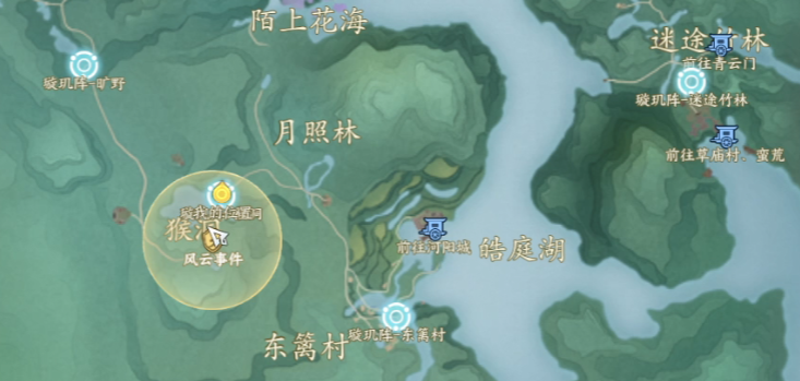 护酒路,有敌伏 传送阵猴洞 该任务共有三次战斗触发,跟随护送致终点
