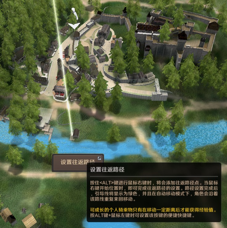 自动移动路径设定为长直线最有效率,若是有遇到PVP的危险(公会宣布战争等),选择在村庄内的短程路线会比较好。