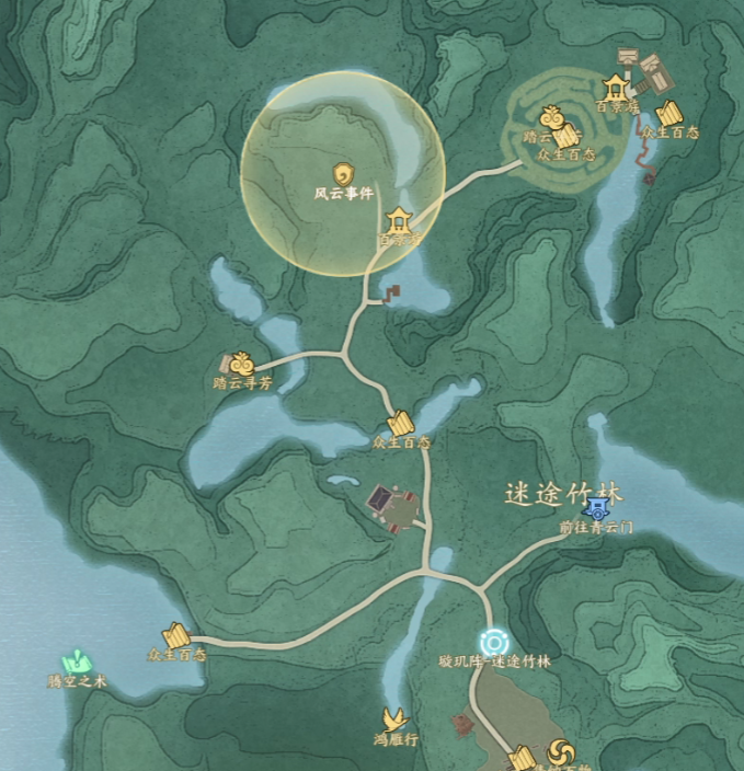 寻药未归恐遇难 传送阵迷途竹林 保护NPC驱逐怪物 该事件为系列事件,后两个风云事件为同一个系列