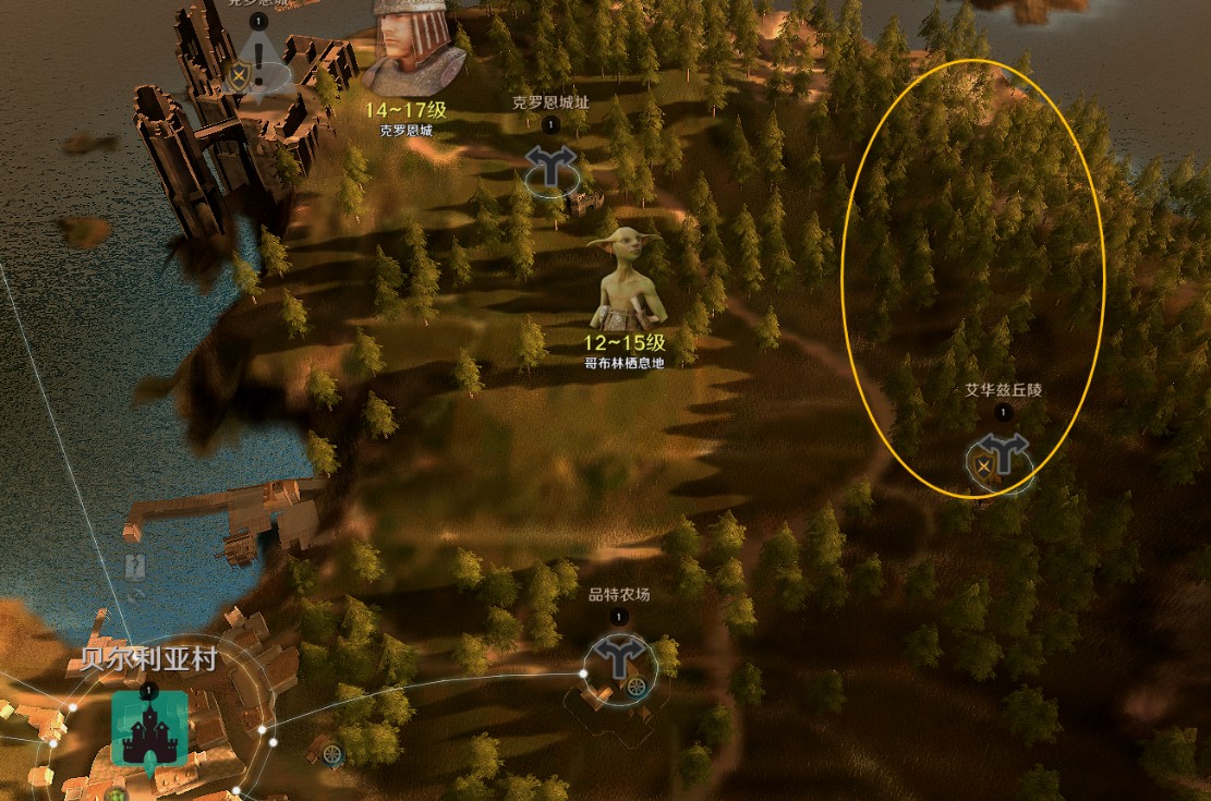 不仅离奥尔比亚村庄或贝尔利亚村庄很近,且因为是骑马或走路移动上都没有负担的距离,对于刚开始狩猎的冒险家要累积经验值的话,是还不错的地方。