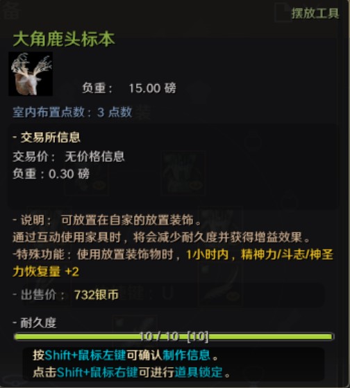 ▲ 大角鹿的头部标本,可以得到精神力恢复上升效果。