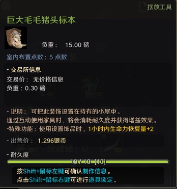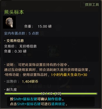 头部标本可以设置在居住地,进行互动(R)的话,可以获得增益效果。