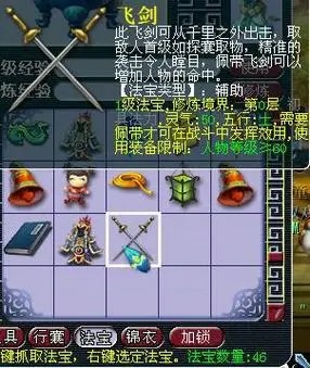 1、飞剑主要是用来提升佩戴者的物理伤害,一般都是大唐选的第一件法宝。