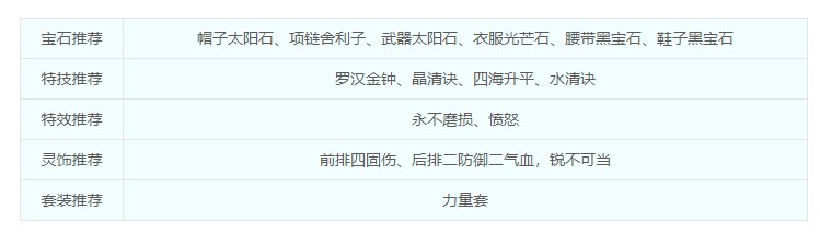 帽子月亮石、项链舍利子、武器太阳石、衣服光芒石、腰带黑宝石、鞋子黑宝石 |