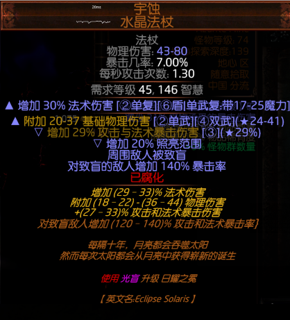 首先武器宇蚀带来的致盲是非常棒的保命机制,因为被致盲的怪物是硬减了50%的命中率。