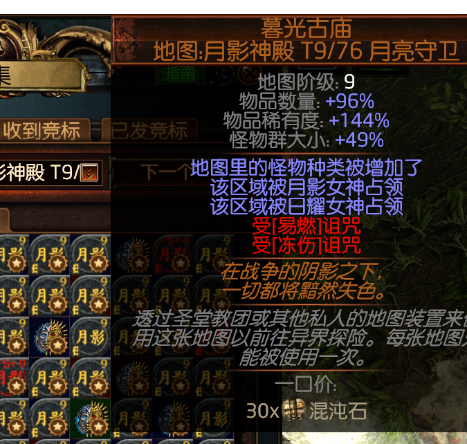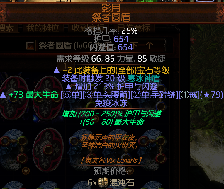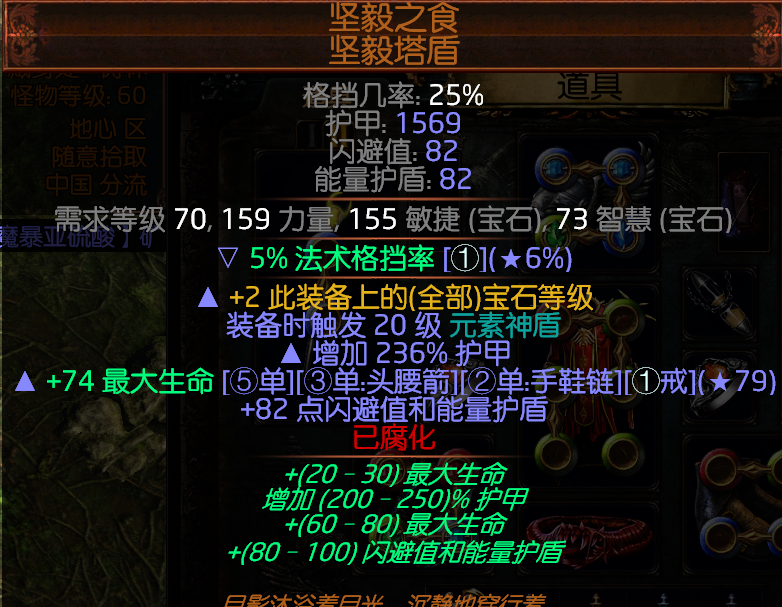 这两个盾然后在加上一个连接石卖商店就可以获得我们的所需要的元素神盾,而获得这两个盾的方式是由,T9的暗金地图暮光古庙获得而来,打一次二选一要影月或者日可以自己选择