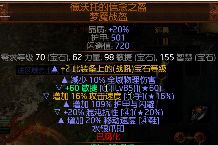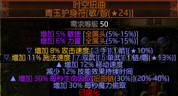 接下来是整个BD最核心的装备最主要的属性就是每等级增加每秒回复1生命90级就相当于多了90的秒回,所以需要绑定两个来增加秒回。