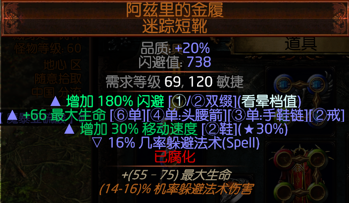 接下来是鞋子推荐女王鞋30%的移动700多的闪避值还增加了16%的法术躲避是真的很好用